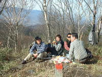 | ここが頂上です! | 陽だまりの中でランチタイム。 | 尾根道をおります。 |