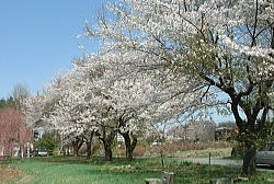 | 4月13日(土) 風路前の桜が、今年はもう満開です。居なが らにしてお花見ができて贅沢な気分です。 本当は例年のようにゴールデンウィークの頃 満開になって、多くのお客様に楽しんでいただ きたいのですが・・・ |