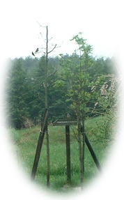 | 4月21日(日) 今日は朝から雨です。おとなりのしだれ桜も、雨にけむって います。カラマツの新芽も雨にぬれてみずみずしい。 ホットミルクを飲みながら窓の外を見ていると、かわいい訪 問者が次々にやってきました。もず・かわらひわ・つぐみ・・・ 右の写真の左上に2羽、えさ台に1羽いるんですが、わかり ますか?(10倍ズームのカメラが欲しい!) かわらひわの羽の黄色の鮮やかさ、もずのしっぽをくるくる 回す仕草など、双眼鏡でながめていると、時のたつのも忘れ てしまいそうです。 |