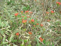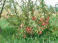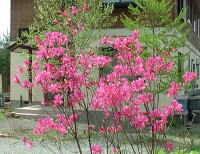 ボケの花が満開 です。実は果実 酒にします。すっ きりしておいしい! 玄関のつつじも 満開です。 |