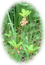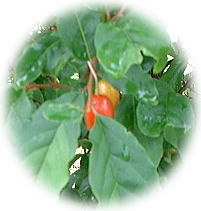 | 6月23日(日) にわのグミが実をつけました。宝石のようです。 たくさんなったら、これも果実酒にしたいと思って いますが、ヒヨドリとの競争かもしれません。(負 けそうだなぁ・・・) |