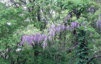 5月19日(日) 散歩に出かけると、となりの沢沿いのフジが見事です。 家に帰ると玄関先にちいさなドウダンツツジが可憐な花を咲かせていました。エゴの木の下にはオダマキが咲いています。 |