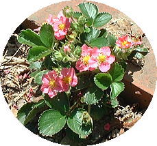 | 5月6日(日) おとなりからいただいたパンダイチゴが花ざかり です。 どうしてパンダなのか?よくわかりません。 実はほとんどならないと聞いていたのですが、 去年は数個甘い実がなりました。 |