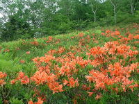 7月6日(土) 7月です。庭のニッコウキスゲが咲きはじめま した。となりにシモツケソウも咲いています。奥の カラマツの林は深い緑に覆われ、ウグイスやカッ コウの鳴き声がきこえてきます。 |