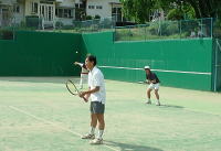 6月1日(土) 高校時代のテニス好きの仲間が集まって、テニス 大会(第1回風路杯と命名!)を開催。実力派有り、 道具で決める派有り、眼力で勝負派有りと、なかな か楽しい大会になった!・・・かな? 「あれーっ」「あっ、おかしいなぁー」の連発で、ボ ールは相手コートではなくコートの外へ飛び出すこと も・・・それでも、和気藹々のプレー! 皆さん、ほん とにご苦労さんでした。 テニスのあとのビールはうまい!!! |