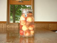 6月15日(土) 周平の藤沢の実家から小桃が送られてきました。 香りも味もいいのですが、なにしろ小さくてむくのが めんどう、ということで、果実酒にしています。前回 作ったのもおいしい!今回のが飲めるようになるの は、3ヶ月後くらいかな?・・・ |