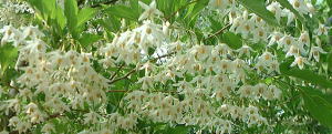| 6月9日(日) 庭のエゴの木の白い花が満開 になりました。 枝いっぱいに咲いた小さな花が 風に揺れています。 |