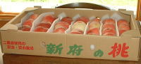 | 7月26日(金) きょうは新府へ桃の買出しに行きました。 4月には満開の桃の花で私たちを迎えて くれたところです。 風路ではこの桃を使ってシャーベットや スープ(風路名物!)を作っています。 もちろんそのまま食べても最高においし い! |