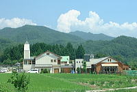8月1日(木) 買出しの帰り、141号から山の中に入っ たところにできた、「おいしい学校」でランチ を食べました。(パスタランチ1200円) 古い校舎を改造したレストランや売店は 周りを山と森、田んぼに囲まれて、その向 こうに八ヶ岳や南アルプスを望む素晴らしい 環境の中にあり、それだけでも大御馳走! |