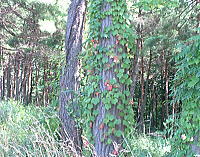 8月20日(火) あっと言う間に、あたりは秋の気配です。 散歩にでかけると、風路の下の「馬の道」の アカマツにからみついたツタが早くも色づき始 めています。 おとなりのコスモスも風に揺れていました。 これからいよいよ、小淵沢は華やかな季節を 迎えます。 |
